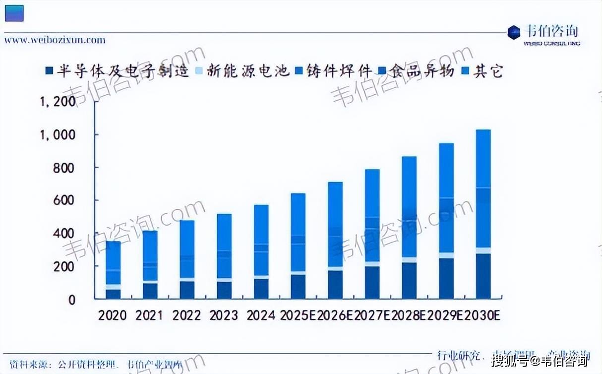 国内市场方面,2020-2024年,中国工业X射线%的复合增加率持续扩张。受益于中国新能源财产的兴旺成长,新能源电池、食物异物检测板块市场仍会实现较快增加。