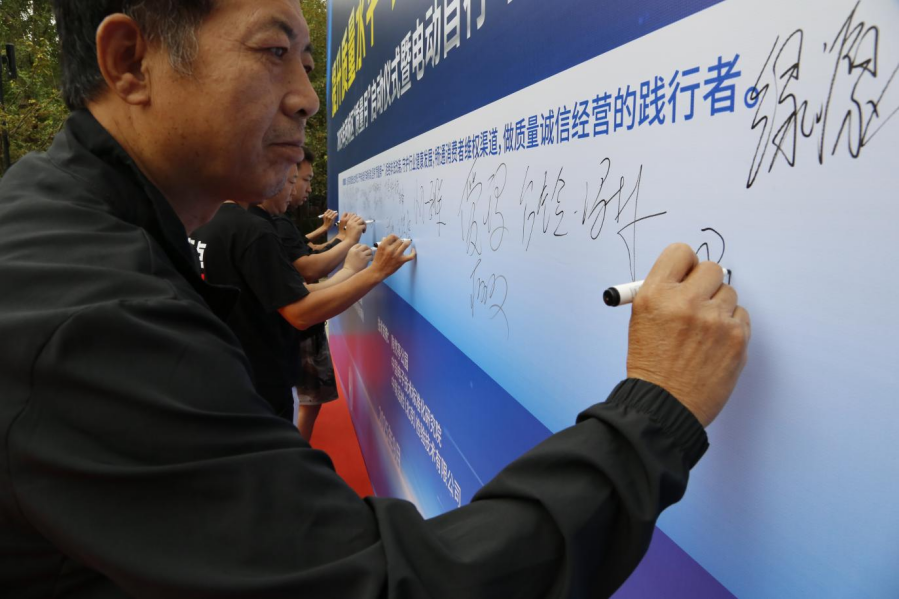 正在随后的企业许诺环节中,2名来自电动自行车品牌方和发卖企业的代表上台《质量书》,许诺将严酷遵照新国标要求,从原材料采购、抵制不法拼改拆、发卖不及格产物等行为,以高质量产物帮力质量强区扶植。20家参会的电动自行车企业代表配合正在质量许诺布景板上签名,一笔一划不只是对消费者的许诺,更彰显了企业自动参取质量共治的义务担任。